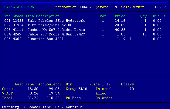 The Stock Screen of Sales and Order function in Multipoint allows data entry of stock items being sold using either keyboard or bar code scanner.