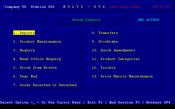 Multisys (Stock Control) - Main Menu